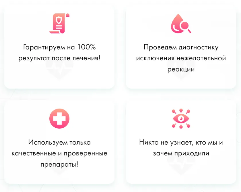 Мы гарантируем полную конфиденциальность. Врач никому не сообщит о том, что вы проходите психотерапию. Данные, которые удалось узнать во время консультации, также не разглашаются. Информация в государственные структуры, занимающиеся контролем психических заболеваний, не передаются. Вас точно не поставят на учет.